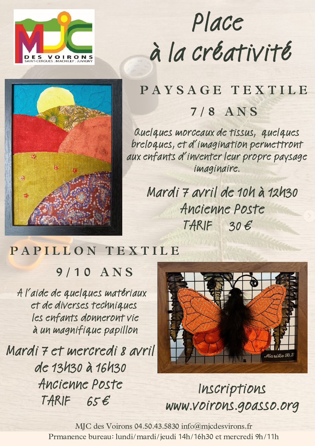 A l'aide de quelques matériaux et diverses techniques, les enfants donneront vie à un magnifique papillon Mardi 7 et mercredi 8 avril de 13h30 à 16h30 LIEN INSCRIPTION