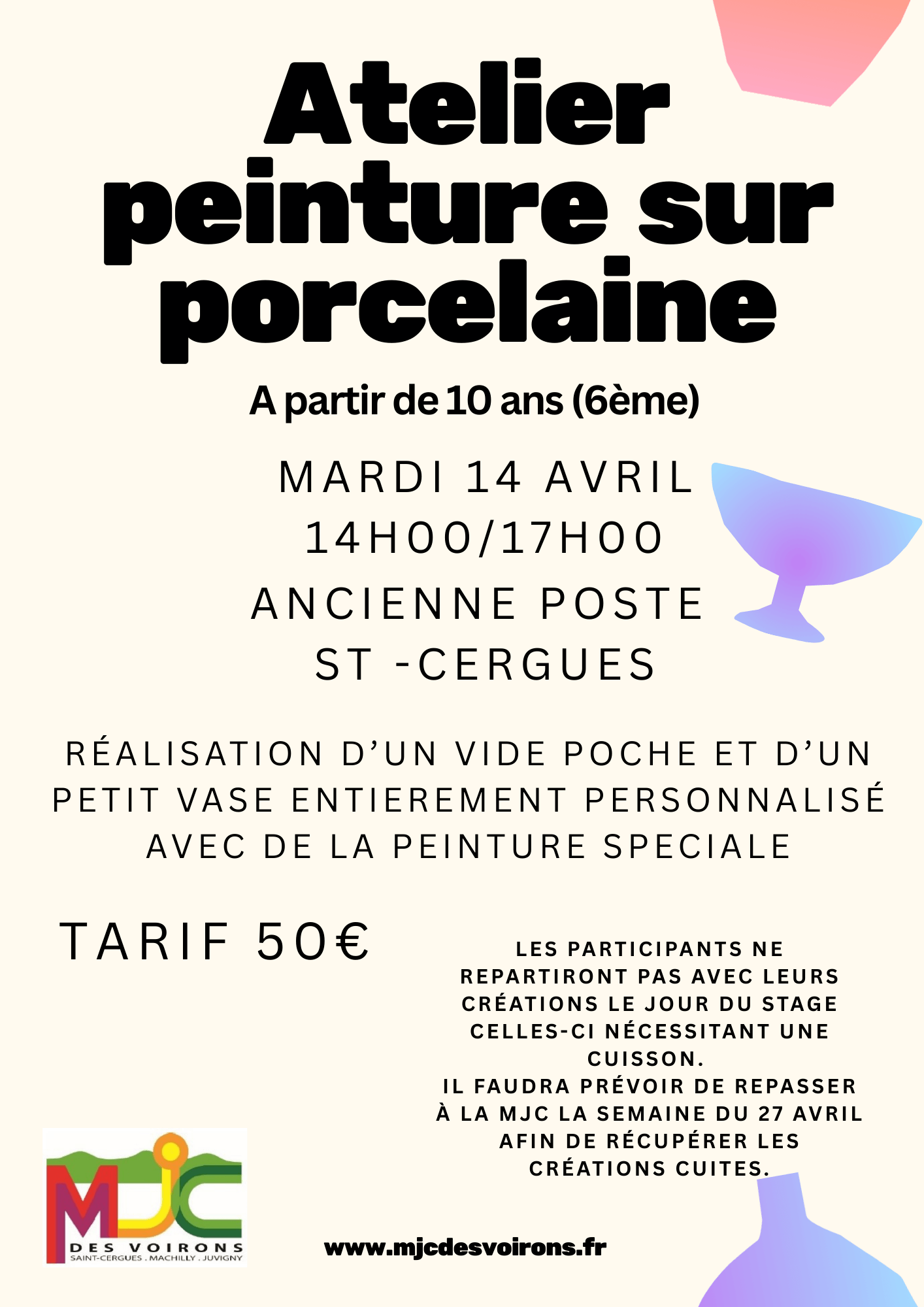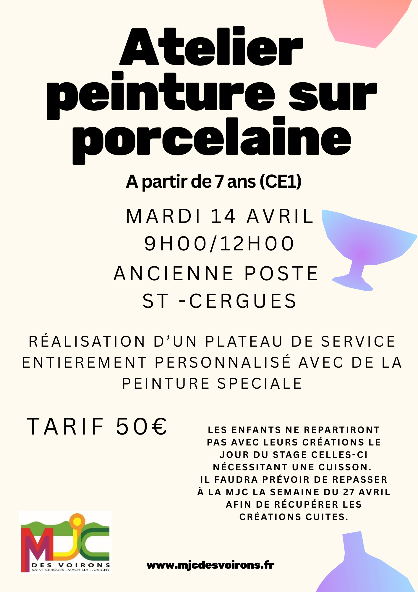 Ce stage de 3h00 permet aux enfants de découvrir la peinture sur porcelaine et de se familiariser avec le matériel, le choix des couleurs, et la réalisation d’une pièce simple. […] |