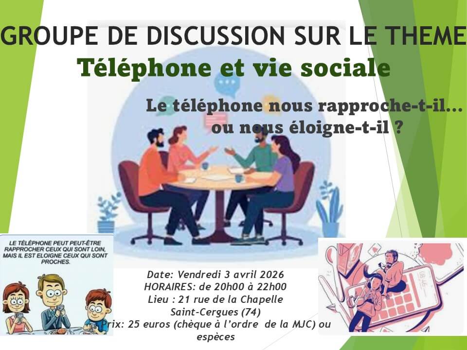 Un moment d’échange et de réflexion sur la question : « Le téléphone nous rapproche-t-il ou nous éloigne-t-il ? ». Les participants pourront discuter de l’impact du téléphone sur les […] |