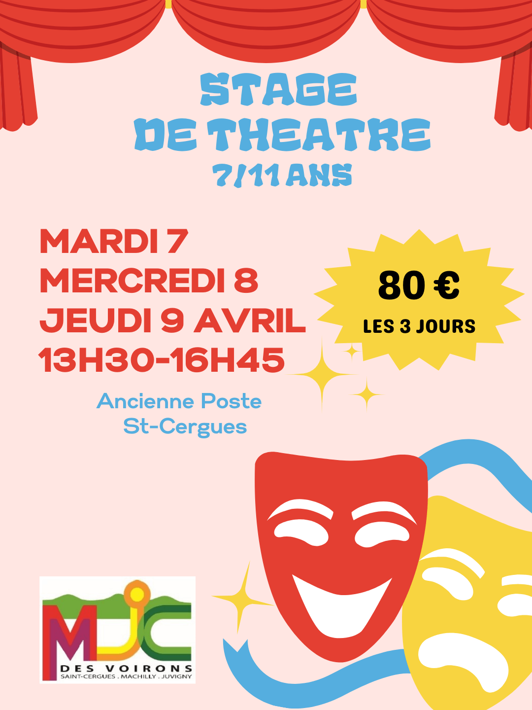 Créations de petites scènes improvisées Travail sur le corps et la voix Expressions des émotions Mimes LIEN INSCRIPTION |